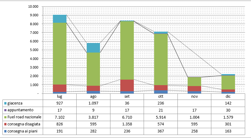 In poco tempo saniamo una situazione che avrebbe portato ad un esborso non dovuto di circa 60.000 euro all’anno. La contestazione dei problemi riscontrati sull’indicizzazione del supplemento carburante ha portato alla constatazione dell’errore da parte del corriere e una rapida soluzione del contenzioso. A partire dal quarto mese dall’inizio dei controlli le fatture non riportavano più alcun errore sistematico. La situazione attuale, di regime, vede una presenza quasi trascurabile di anomalie, come evidenzia il seguente resoconto sintetico relativo a uno degli ultimi mesi.