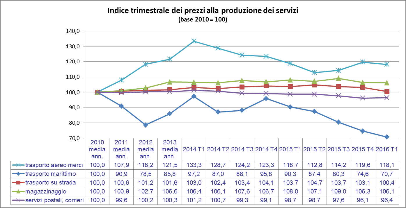 Istat: il calo dei prezzi dei servizi di trasporto e logistica prosegue nel primo trimestre 2016