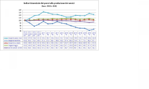 L’Istat ha diffuso oggi i prezzi alla produzione di servizi del quarto trimestre 2016. Questi indicatori, lo ricordiamo, misurano l’evoluzione dei prezzi dei servizi business venduti da imprese ad altre imprese e alla Pubblica Amministrazione.